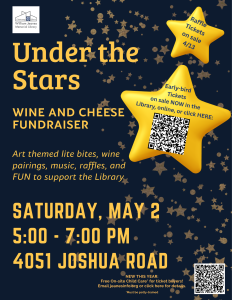 Look for our famous RAFFLE BASKETS on display at the Library NOW. Tickets on-sale in person or online starting Monday, April 13. You do not need to attend the event to win, but you’ll have more fun if you do!